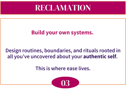 ✦Reclaiming Ease — sustainable performance and self‑concept at work for creative, wellness, and conscious brands.